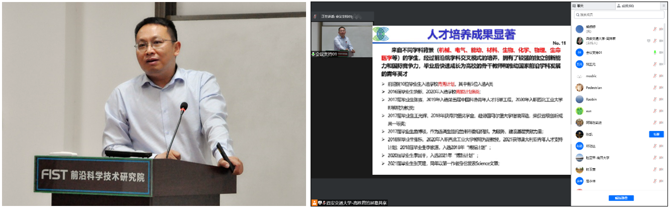 To celebrate the 126th anniversary of the founding of Xi 'an Jiaotong University and the 66th anniversary of its relocation, FIST held an alumni association of "You can be seen along the way" in Qujiang Campus on the evening of April 22nd. The association took the form of online and offline interaction, and invited more than 60 alumni to attend the meeting online. The leaders of Frontier Institute and representatives of teachers and students attended the meeting, and Li Miaohui, deputy secretary of the Party Committee of FIST, presided over the association.