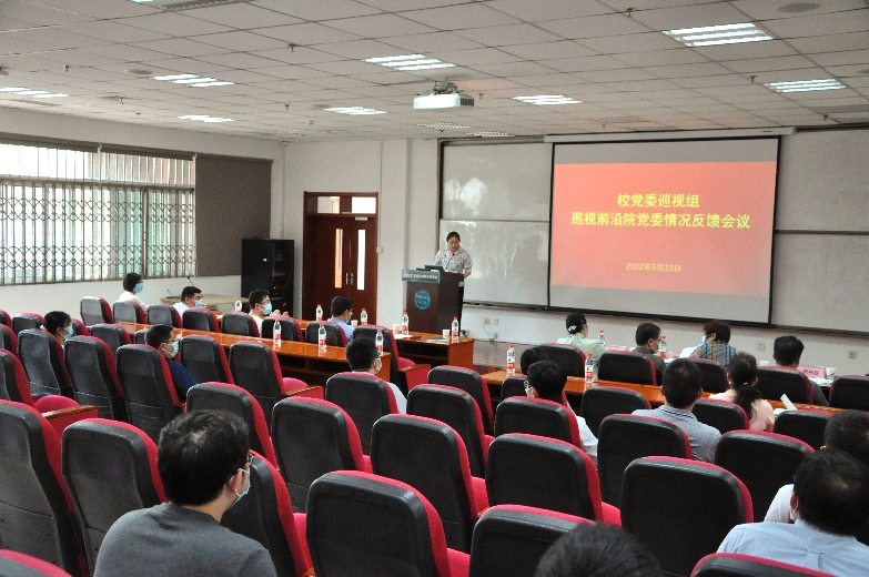 陈天宁从人才队伍建设、教育教学、学科规划、制度建设、党政工作等各个方面传达了反馈意见,并提出了整改建议。